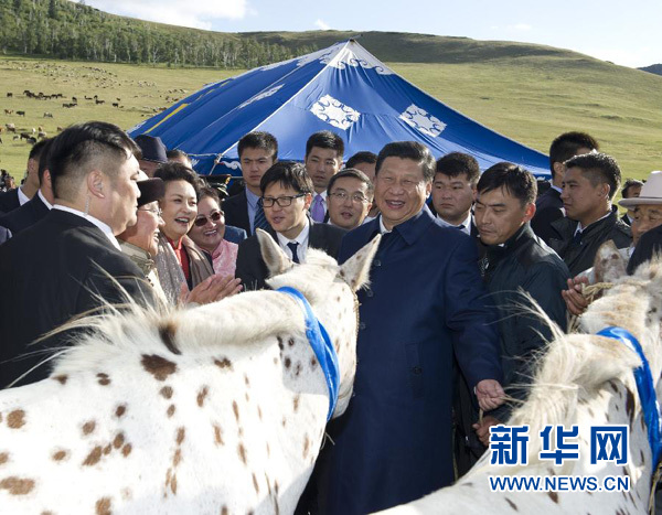 The two Mongolian horses, given to the Chinese president and his wife as gifts of goodwill, were named after Altay Mountains and Kherlen River respectively, an indication of China-Mongolia neighborliness blessed by border mountains and rivers.