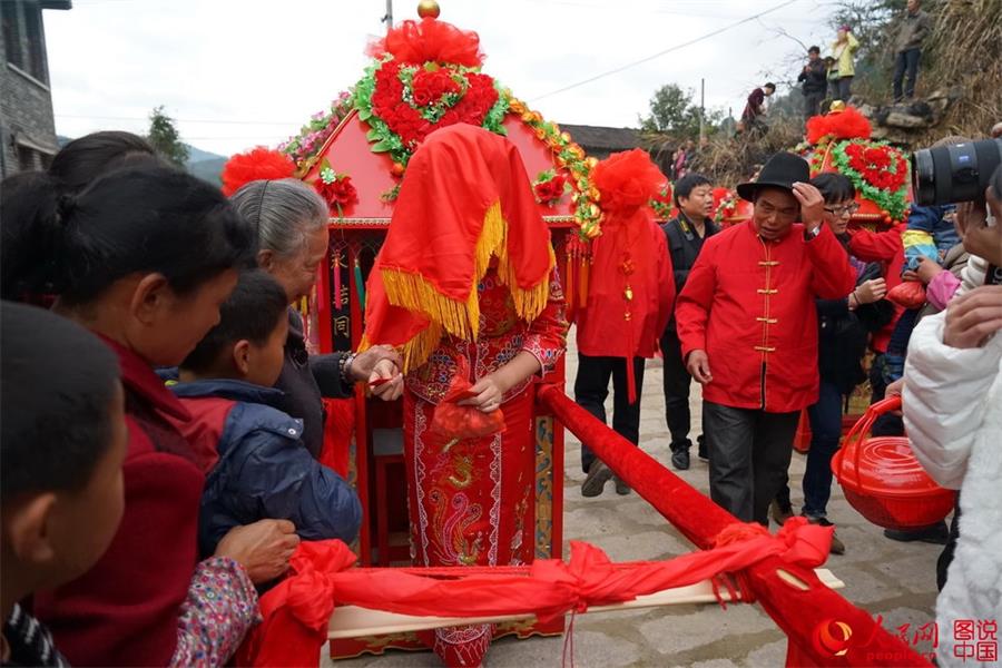 Six pairs of bride and grooms from Shanghai hold a traditional wedding ceremony with local characteristics. (Photo/People.cn)
