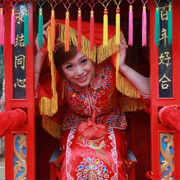 Six pairs of bride and grooms from Shanghai hold a traditional wedding ceremony with local characteristics. (Photo/People.cn)