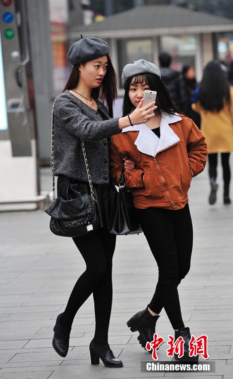 Photo shows the stylish woman walking in the street in Chengdu, southwest China's Sichuan province in winter. Despite of the cold weather, women in Chengdu still prefer skirta. (CNS/An Yuan)