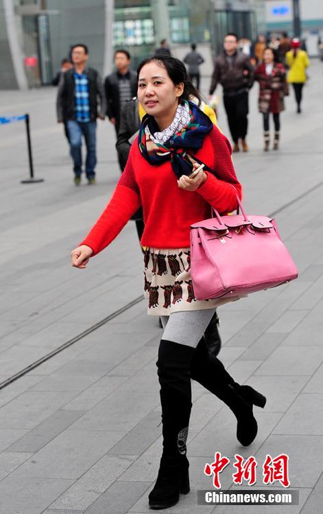 Photo shows the stylish woman walking in the street in Chengdu, southwest China's Sichuan province in winter. Despite of the cold weather, women in Chengdu still prefer skirta. (CNS/An Yuan)