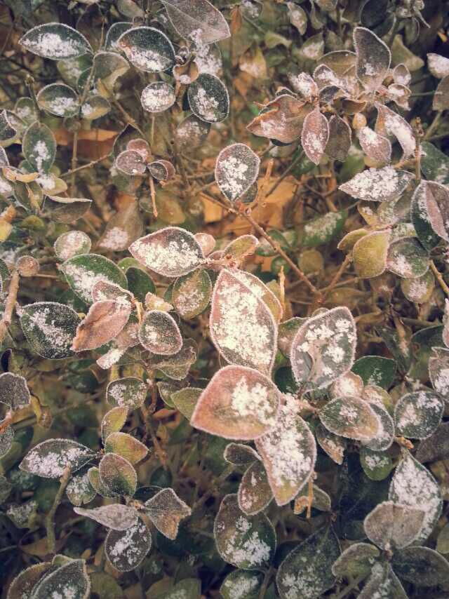 Snow falls onto the plants in Beijing on Dec. 9, 2014. Beijing witnessed its first snowfall in this winter Tuesday. It has put an end to the dry spell in the Chinese capital. (Photo/Li Xueran)