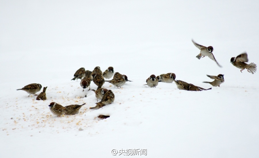 Beijing witnesses its first snowfall in this winter on Dec. 9, 2014. Snowfall brought humidity and cleaned up the air for Beijing, which has suffered from the lack of precipitation.(Photo/CCTV news offical microblog)