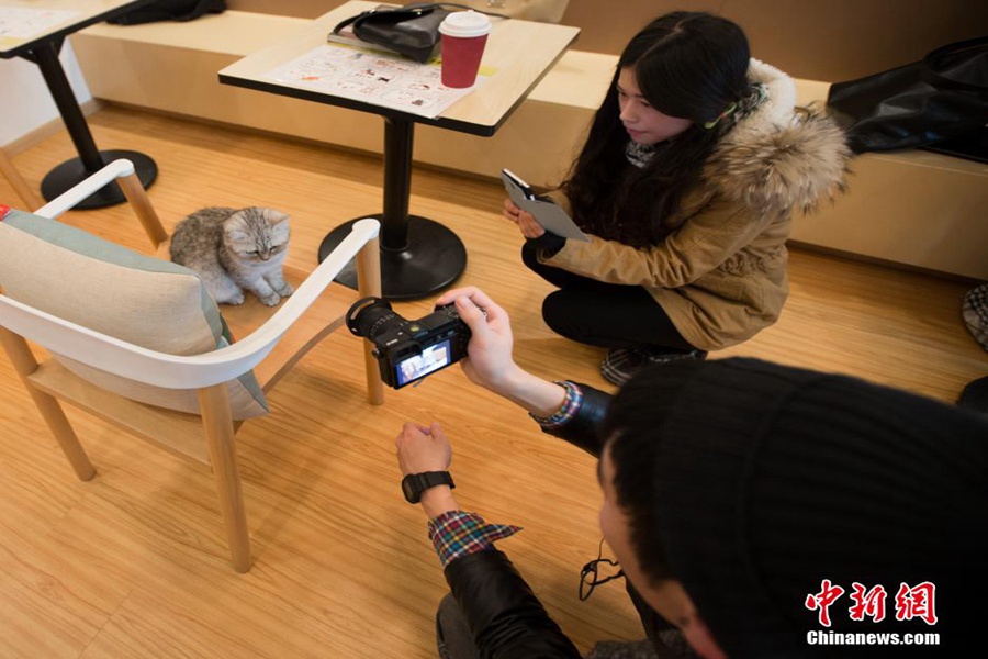 Some readers take photos of the cute cat. (CNS/Su Yang)