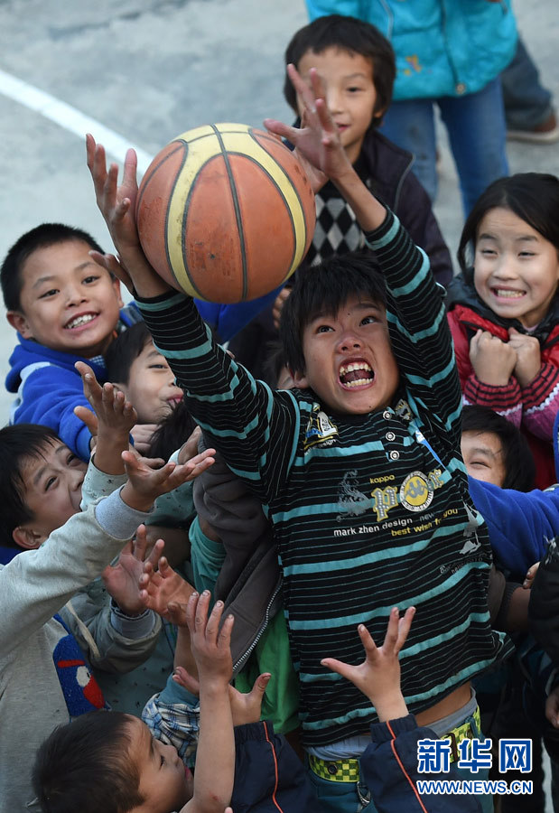 Students play basketball on the playground in a village in Dahua Yao Autonomous County in south China's Guangxi on Dec. 8, 2014. (Xinhua News Agency/Zhang Ailin)