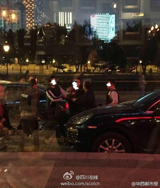 Trying to escape, the suspects damaged nine vehicles, including a red Tesla. Finally the police caught two suspects. One suspect is still at large. Seven purses of brand including Hermes, LV abandoned in the river by the suspects have been salvaged. (Photo/Weibo of SCOL)