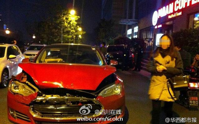 Trying to escape, the suspects damaged nine vehicles, including a red Tesla. Finally the police caught two suspects. One suspect is still at large. Seven purses of brand including Hermes, LV abandoned in the river by the suspects have been salvaged. (Photo/Weibo of SCOL)