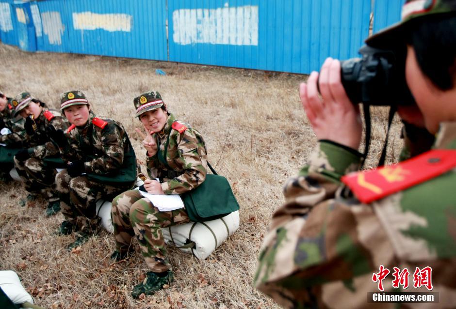 More than 3,000 new female recruits of Beijing Armed Police Force receive training in suburb of Beijing on Dec. 9, 2014. Training subjects include forced march, camping and military boxing in order to strengthen physical condition of the new recruits. (CNS/Yang Huifeng)