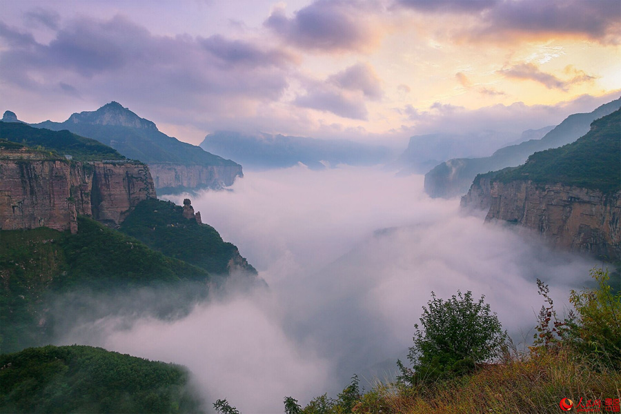 Located 40 kilometers east of Lingchuan county, north China’s Shanxi province, Xiyagou Valley is at the foot of Wangmangling Mountain, which is famous for its perilous peaks and sea of clouds. The valley is about 1,000 meters lower than the peaks around, making the landscape exceptionally splendid. (Photo source: people.cn)
