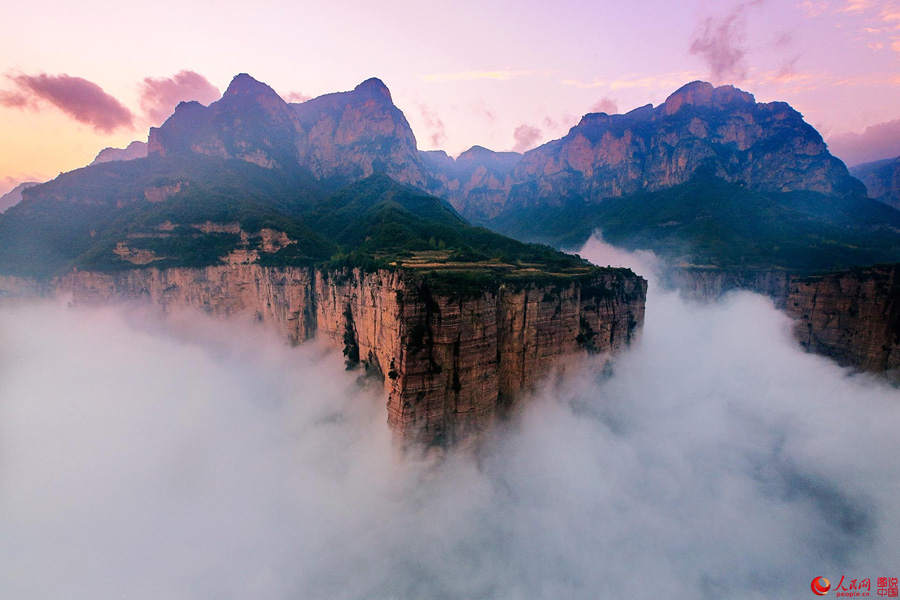 Located 40 kilometers east of Lingchuan county, north China’s Shanxi province, Xiyagou Valley is at the foot of Wangmangling Mountain, which is famous for its perilous peaks and sea of clouds. The valley is about 1,000 meters lower than the peaks around, making the landscape exceptionally splendid. (Photo source: people.cn)