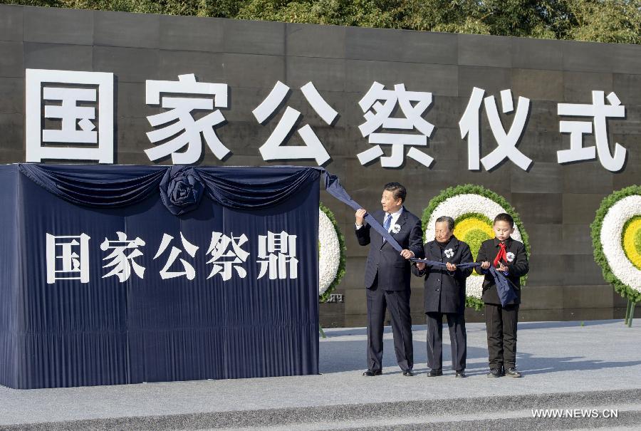 The Nanjing Massacre, committed by Japanese aggressors, was one of three major massacres during WWII. It was an atrocious anti-human crime and a dark page in the history of humanity, Xi said while addressing a state commemoration for China's first National Memorial Day for Nanjing Massacre Victims.