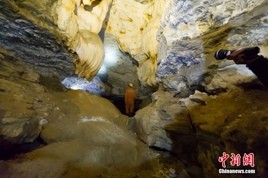 Shuanghe River Cave Group, 159,140 meters long, is the longest cave in China and the second longest in Asia. A Sino-French team is exploring the cave and the whole investigation will be concluded on Dec. 20, 2014. (Chinanews.com/He Junyi)