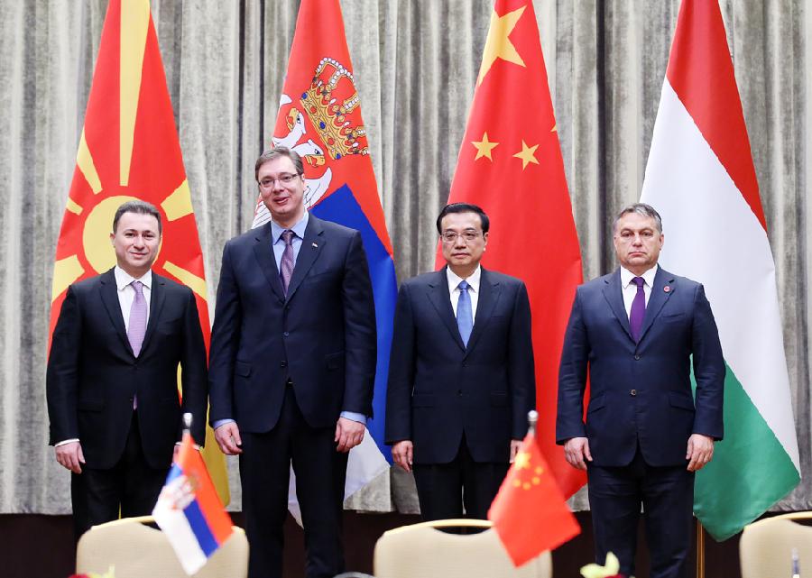 Chinese Premier Li Keqiang (2nd R) meets with Serbian Prime Minister Aleksandar Vucic (2nd L), Hungarian Prime Minister Viktor Orban (R) and Macedonian Prime Minister Nikola Gruevski in Belgrade, Serbia, Dec. 17, 2014. (Xinhua/Yao Dawei)