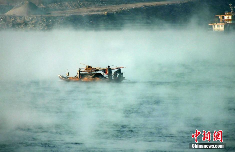 Mist shrouds the Yangtze River in the morning of Dec. 17 in Yichang city, central China's Hubei province. According to meteorological experts, the phenomenon occurred due to the sudden drop of temperature recently which resulted in the water temperature being higher than the air temperature. (CNS/Liu Junfeng)