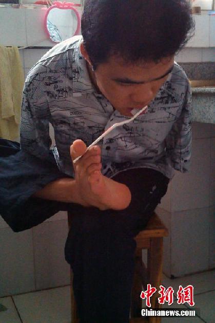 Wu brushes his teeth. (Photo/ Ma Yiheng)