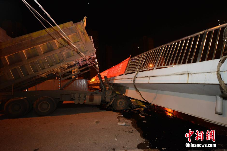 The truck cab crushed under the overpass, on Dec, 18. (CNS/Yang Huafeng)