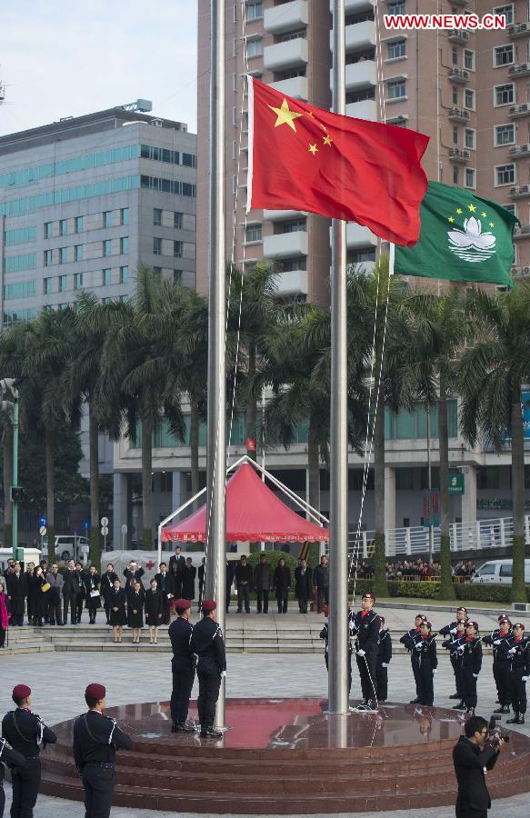 A flag-raising ceremony is held to celebrate the 15th anniversary of Macao's return to the motherland in Macao, south China, Dec. 20, 2014. (Xinhua/Lui Siu Wai)