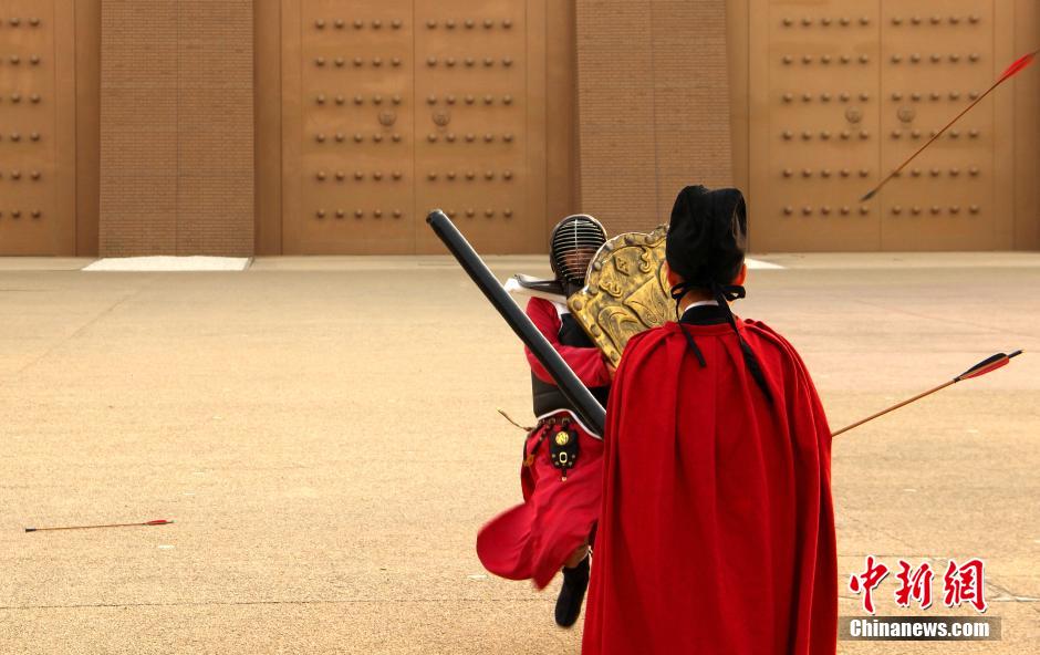 Citizens perform Wushu in a park in Xi'an. (CNS/Ma Zhifeng)