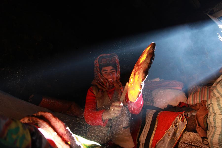 A woman takes a naan out from a hand-made clay pit. [Photo by Wang Lie/chinadaily.com.cn]