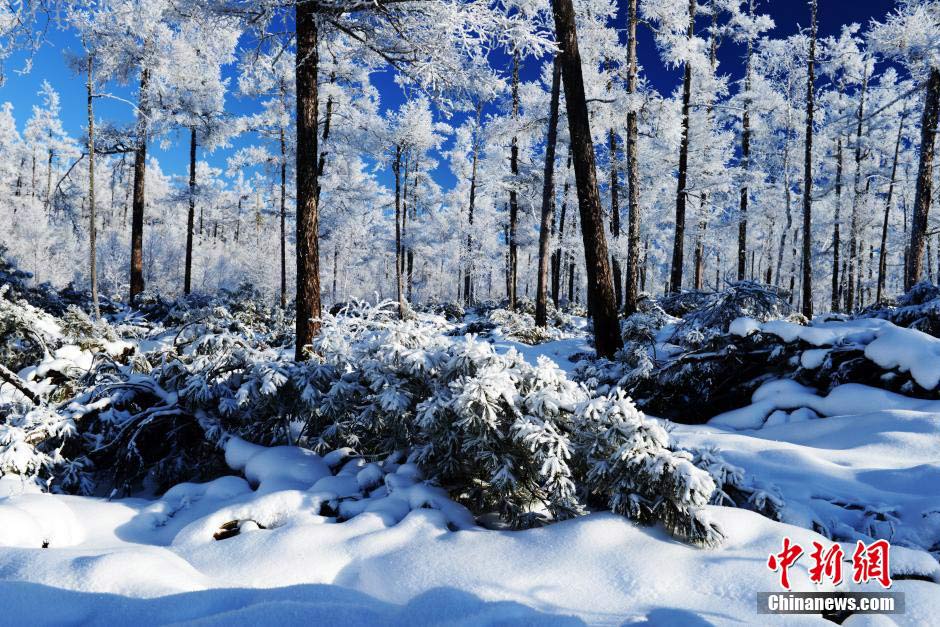 The winter scenery of northeast China’s Great Khingan Mountains is especially spectacular. The rime lasting for over 50 kilometers makes the place a fairyland. (Chinanews/Zhang Fu)