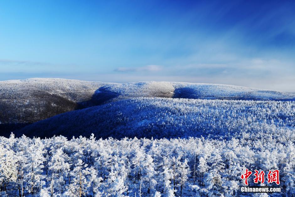 The winter scenery of northeast China’s Great Khingan Mountains is especially spectacular. The rime lasting for over 50 kilometers makes the place a fairyland. (Chinanews/Zhang Fu)