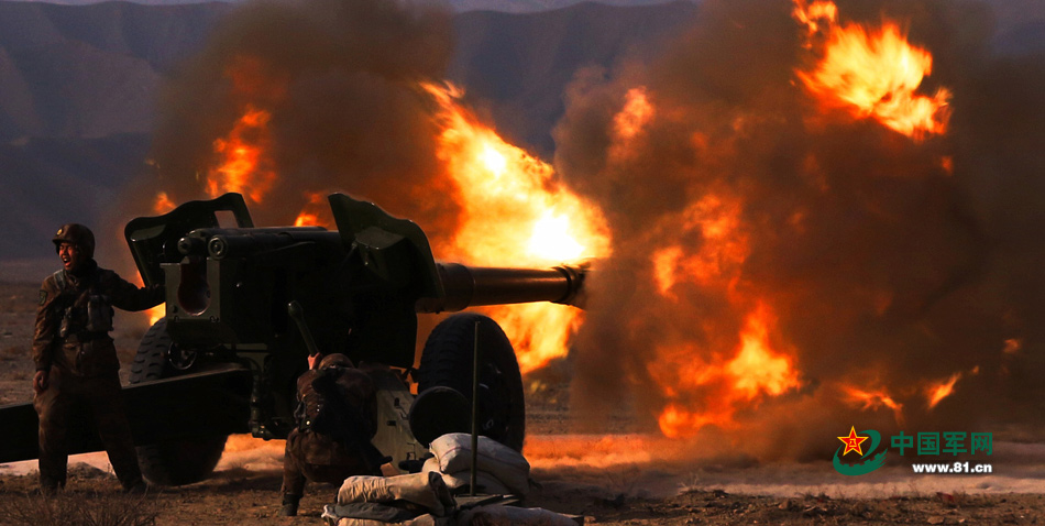 | An artillery regiment successfully conducts a winter shooting test in northwest China’s Xinjiang Uygur autonomous region On Dec. 19, 2014. All the targets were hit precisely. (www.81.cn/Geng Yunlong) |