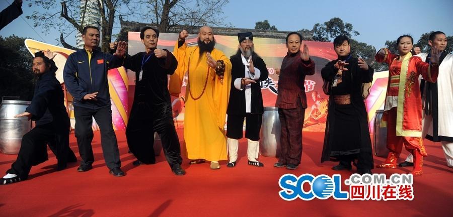 Ten Chinese kung fu masters from different martial art schools including Shaolin, Wudang, Qingcheng, Emei, Laoshan, Kongtong, Taiji and Longquan gather in Chengdu, capital of southwest China's Sichuan province to participate in the Chinese martial arts and cultural festival on Dec. 21, 2014. Their Kong Fu show won warm applause from the spectators. (Photo/SCOL)