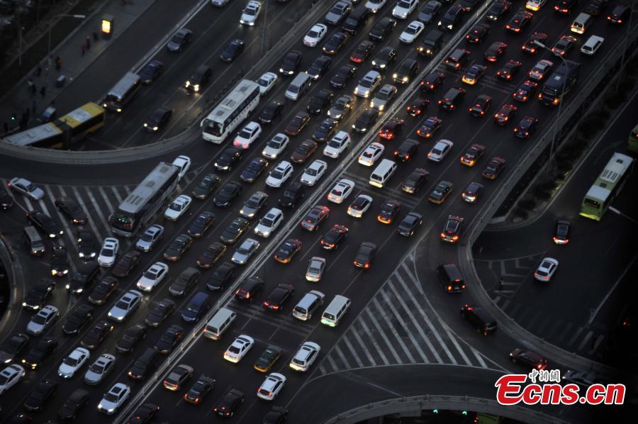 A traffic jam is pictured on roads at the 2nd Ring Road in Beijing, capital of China, Dec. 24, 2014. As Christmas Day draws near, congestion in the capital is expected to reach a peak. (China News Service/Wei Xi)