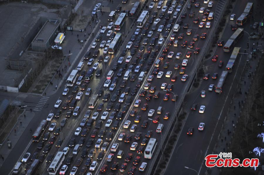 A traffic jam is pictured on roads at the 2nd Ring Road in Beijing, capital of China, Dec. 24, 2014. As Christmas Day draws near, congestion in the capital is expected to reach a peak. (China News Service/Wei Xi)