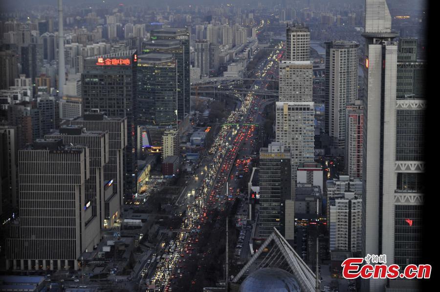 | A traffic jam is pictured on roads at the 2nd Ring Road in Beijing, capital of China, Dec. 24, 2014. As Christmas Day draws near, congestion in the capital is expected to reach a peak. (China News Service/Wei Xi) |