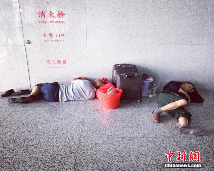 Tired people sleep regardless of time and place. (CNS/Xu Kangping)