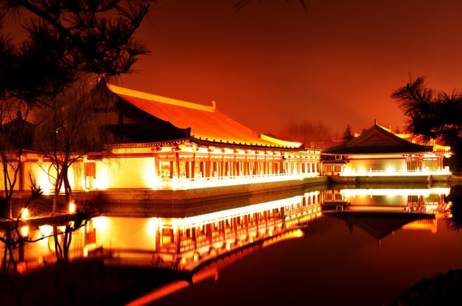 Tang Paradise, located in the east side of Big Wild Goose Pagoda in Xi'an, is the first large-scale theme park of imperial garden of Tang Dynasty. Touring the place at night gives visitors a feel of mystery.