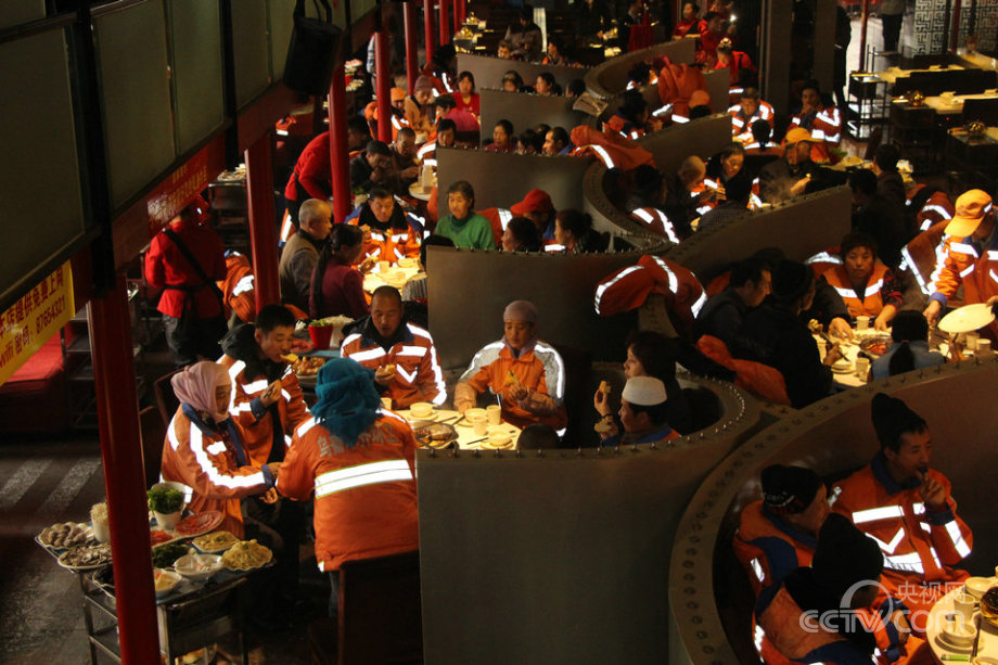 A hotpot restaurant entertains 160 sanitary workers among whom the oldest is 78 years old and the youngest is 25 years old.(cntv.cn/Ma Xu)