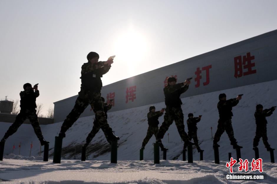 Female SWAT team members in Xinjiang train under harsh weather condition, Dec. 25, 2014. Members of this team are all with excellent physical qualities and educational backgrounds. After a long-term systematic training, they will undertake the mission of protecting the people and maintaining safety of the society. (Chinanews/Fan Xinyu)