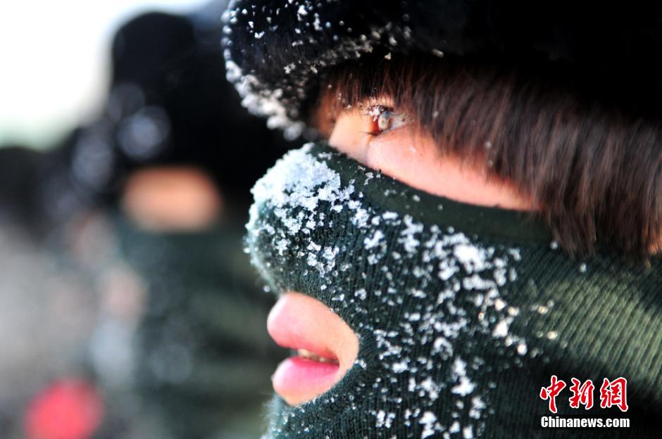 Female SWAT team members in Xinjiang train under harsh weather condition, Dec. 25, 2014. Members of this team are all with excellent physical qualities and educational backgrounds. After a long-term systematic training, they will undertake the mission of protecting the people and maintaining safety of the society. (Chinanews/Fan Xinyu)