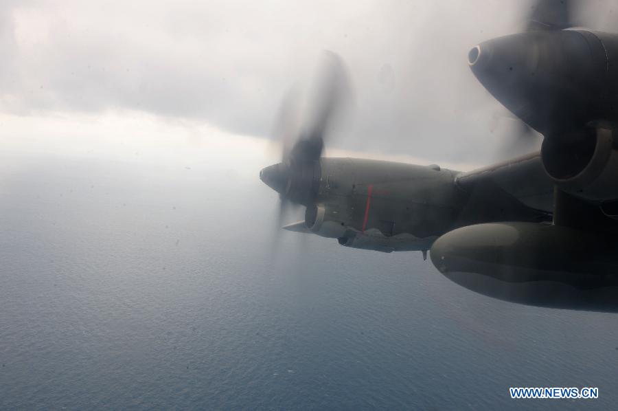 | Photo taken on Dec. 29, 2014 shows the Hercules C-130 during a search operation of AirAsia Flight QZ8501 on the sea of the Karimata Strait, Indonesia. Suspicious objects were detected on Monday in the Java Sea where an AirAsia plane disappeared as the search operation expanded with more countries joining the sea and aerial hunt.(Xinhua/Agung Kuncahya B.) |