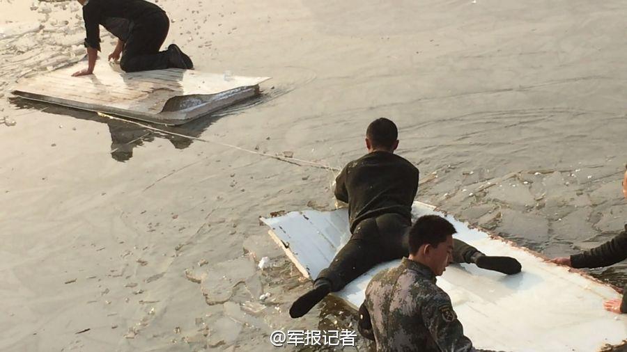 On Dec. 27, two men accidentally fell into an ice hole on a lake in Laiyang, east China’s Shandong province. Zhang Yulei and Liu Haiwen, two PLA soldiers who were on duty nearby, rapidly came to the accidental site to rescue the two drowning men with electric wires and other things available. Later, more soldiers took part in the rescue. Unfortunately, one of the men died, and the other is all right. Zhang Yulei was frostbitten and hospitalized. (Photo source: official microblog of PLA Daily)