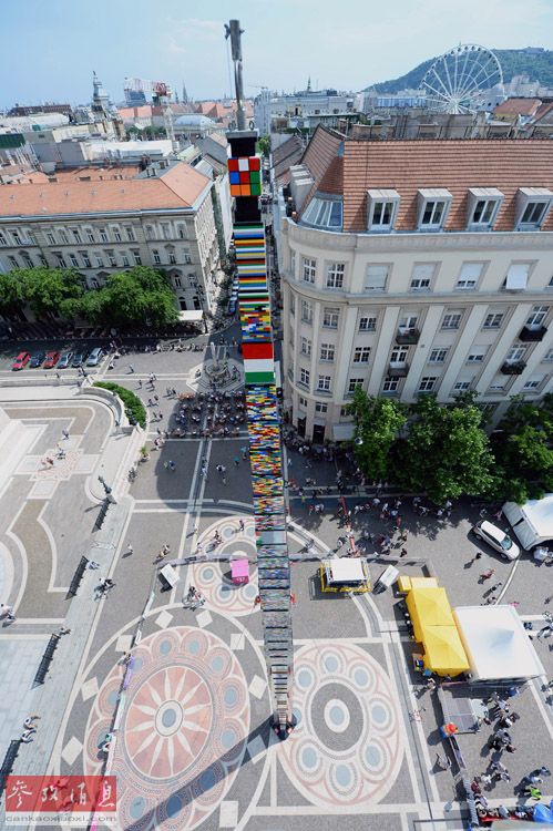 The highest Lego bricks tower of 34.76 meters built in Hungary. (Xinhua/AFP)