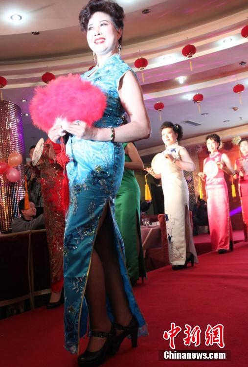 A group of old ladies launch a Cheongsam show in their pursuit of beauty in Lanzhou,northwest China's Gansu province on Dec. 29, 2014. (Chinanews.com/Liu Yutao)