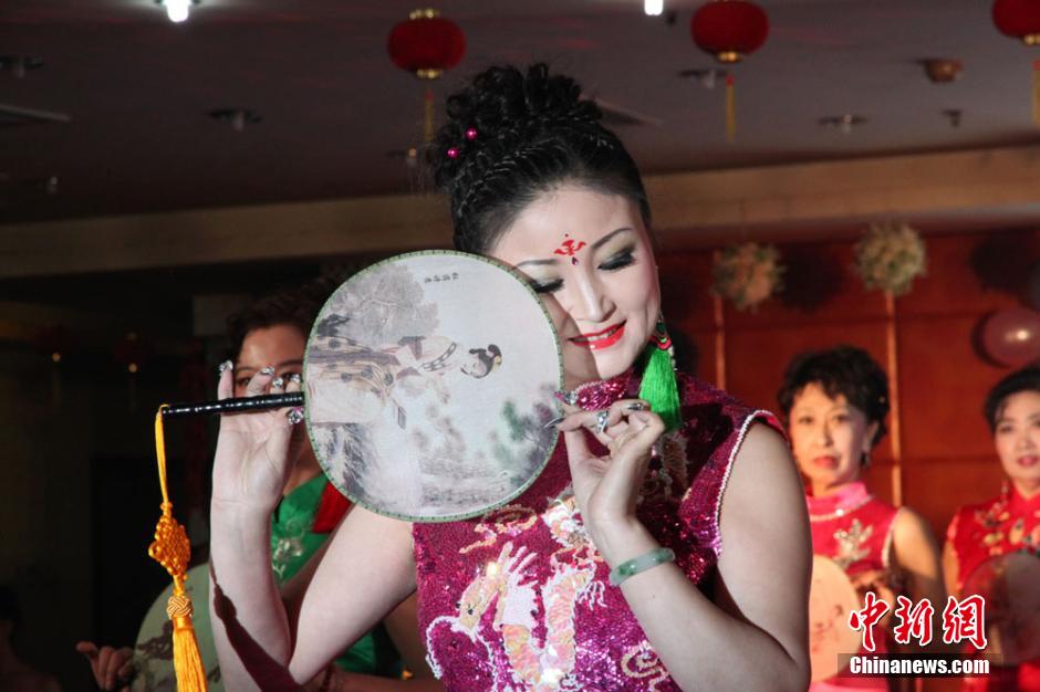 A group of old ladies launch a Cheongsam show in their pursuit of beauty in Lanzhou,northwest China's Gansu province on Dec. 29, 2014. (Chinanews.com/Liu Yutao)