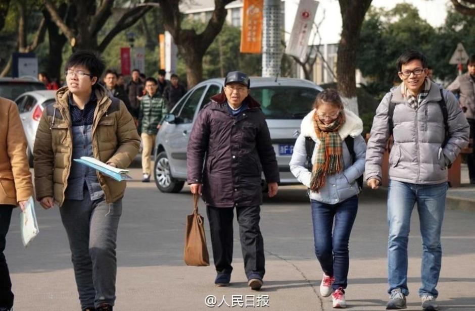| Zhou Weimin, 73, takes part in the postgraduate entrance examination in 2014. He got admitted to the department of physics of Hangzhou Normal University in 1960 and dropped out one year later. He has taken part in the college entrance examination for five times since 2003. (Photo/Microblog of People's Daily) |