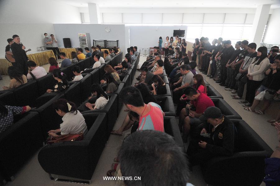 Relatives of people on Indonesia AirAsia's flight QZ8501 pray together at Juanda International Airport in Surabaya, Indonesia, Dec. 31, 2014. Indonesian rescuers searching for the missing AirAsia plane have spotted six bodies and recovered three from waters off the southern coast of Kalimantan island, shortly after they observed floating debris later confirmed to be from the ill-fated plane. (Xinhua/Zulkarnain)