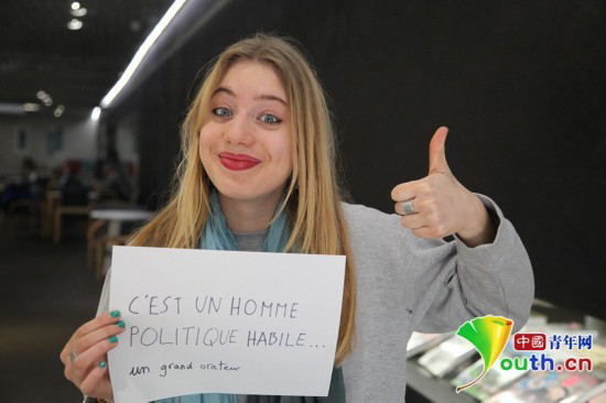 | Yemi Chati, 17, is a student at the French International School in Beijing. She thinks that Xi is an outstanding orator and a flexibile statesman.(Photo/Youth.cn) |