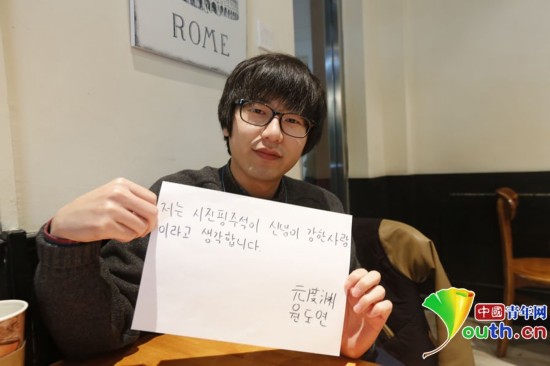 | Yuan Duzhou left Korea eleven years ago and has been educated in China. He thinks that Xi sticks to his principles.(Photo/Youth.cn) |