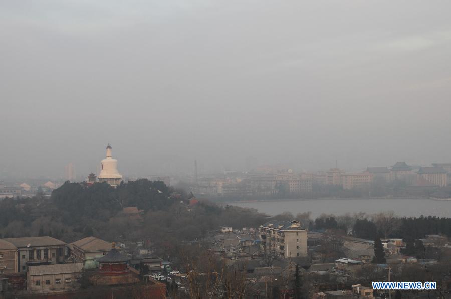 The Beihai Park is shrouded in smog in Beijing, capital of China, Jan. 4, 2015. China's top meteorological authority forecast medium to severe smog in the country's northern regions including Beijing and Tianjin as well as the neighboring Hebei Province on Sunday. Meanwhile, smoggy weather will also affect the country's eastern province of Jiangsu as well as the southwestern province of Sichuan on Sunday. (Xinhua/Liu Xianguo)