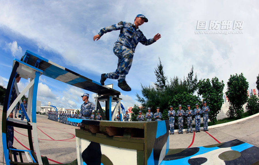PLA Navy soldiers conduct training on the Nansha Islands. (Photo/mod.gov.cn)