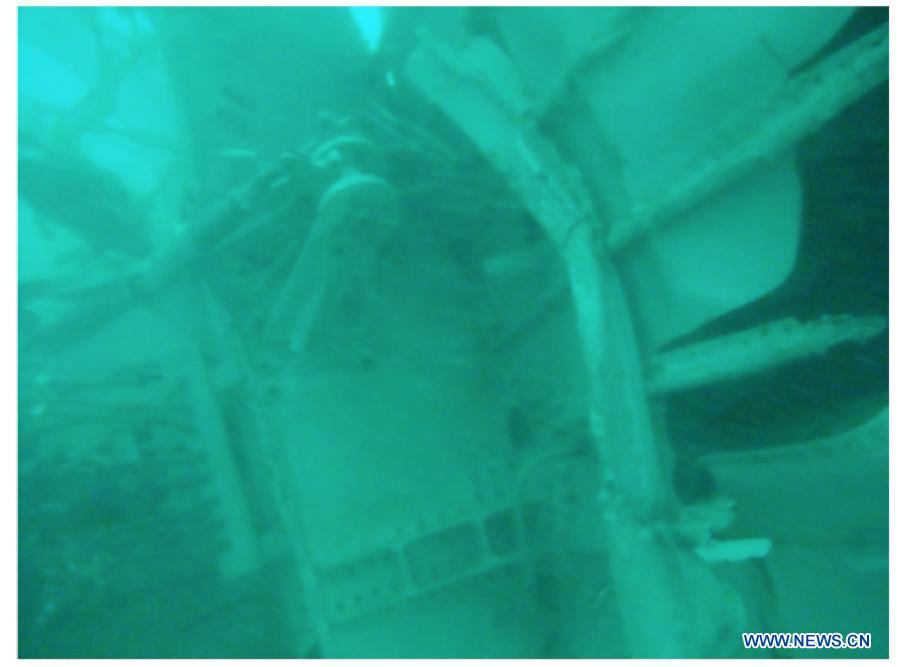 | Photo released by Indonesia's search and rescue agency on Jan. 7, 2015 shows the debris of AirAsia Flight QZ8501. Indonesia's search and rescue team has located the tail of the crashed AirAsia plane underwater, an official in charge said here Wednesday. (Xinhua) |