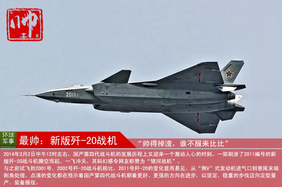 The most handsome fighter - New-type J-20. China-made new-type J-20 first came to the public on March 2, 2014. (Photo/Huanqiu)