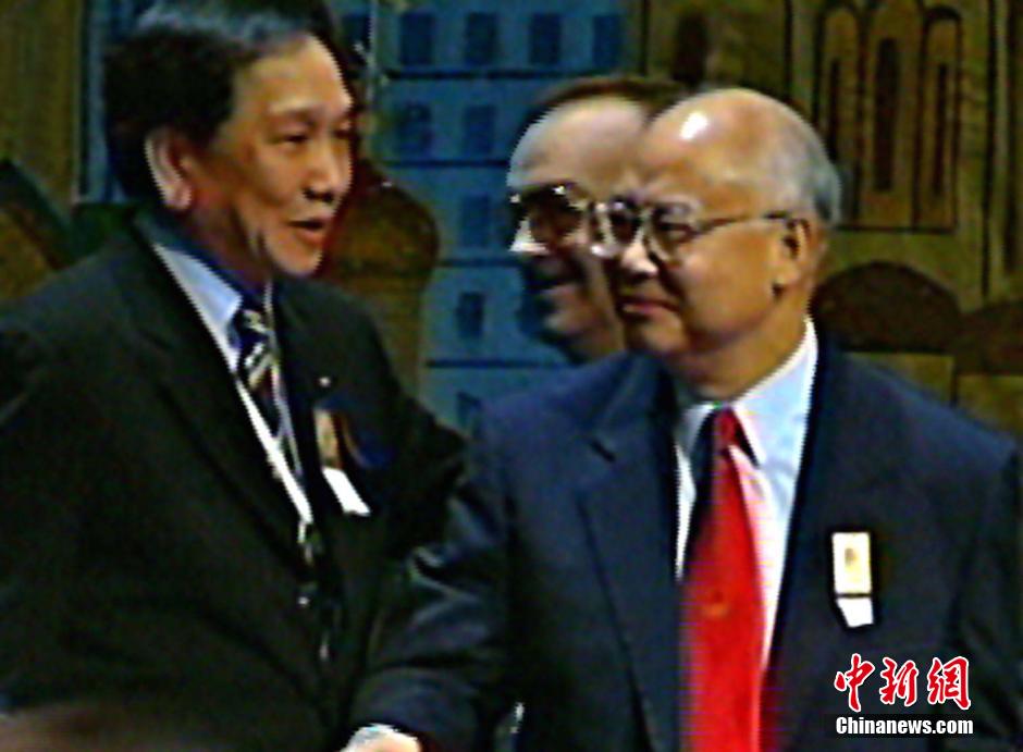 The night of July 13, 2001 - Members of IOC express their congratulations to He Zhenliang. (Photo/CNS)