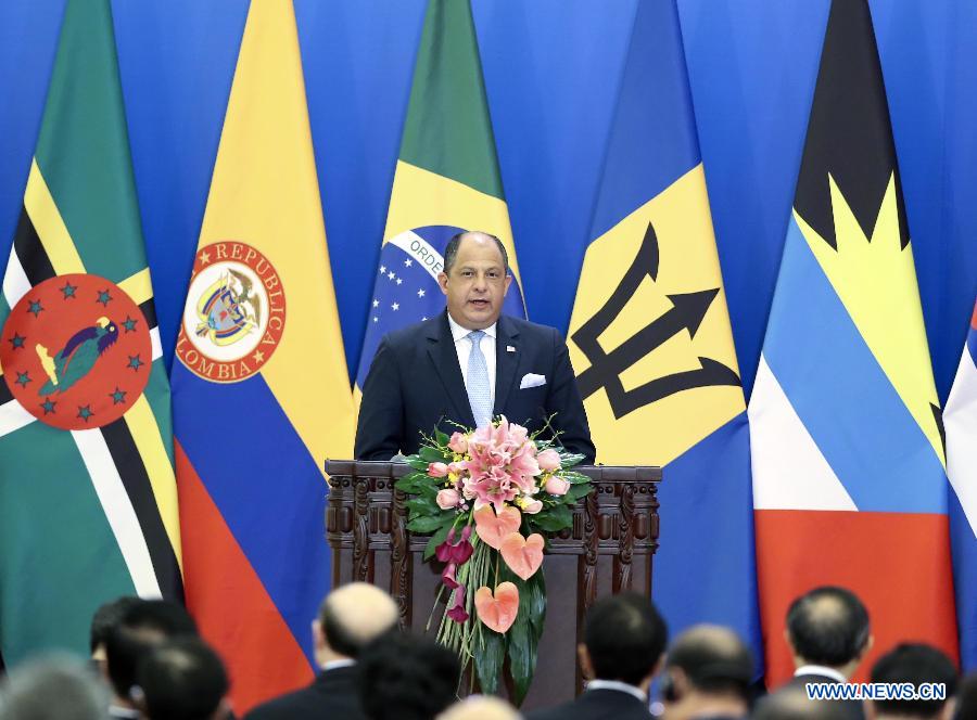 Costa Rican President Luis Guillermo Solis speaks during the opening ceremony of the first ministerial meeting of the Forum of China and the Community of Latin American and Caribbean States (CELAC) in Beijing, capital of China, Jan. 8, 2015.(Xinhua/Ding Lin)